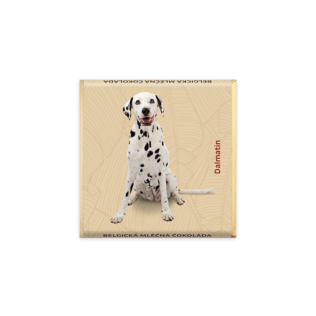 Kvalitní mléčná čokoláda s motivem dalmatina je oblíbeným dárkem. Tato malá čokoláda zaručeně udělá velkou radost každému chovateli psů nebo nadšenému pejskaři. MLÉČNÁ ČOKOLÁDA, minimální obsah kakaové sušiny 32 % Složení: cukr, kakaové máslo, sušené plnotučné mléko, kakaová hmota, sušená syrovátka, bezvodý mléčný tuk, emulgátory (sójový lecitin, E476), přírodní aroma (vanilín). Obsahuje mléko, sóju. Může obsahovat stopy arašídů a jiných skořápkových plodů. Výživové údaje ve 100 g výrobku Energetická hodnota2 268 kJ / 542 kcal Tuky- z toho nasycené mastné kyseliny31,7 g19 g Sacharidy- z toho cukry56,9 g55,8 g Bílkoviny5,6 g Sůl0,26 g Skladujte v suchu při teplotě do 20 °C. Chraňte před slunečním světlem. Vyrobeno v ČR, čokoládová hmota BARRY CALLEBAUT - Belgie.Doplňkové parametry