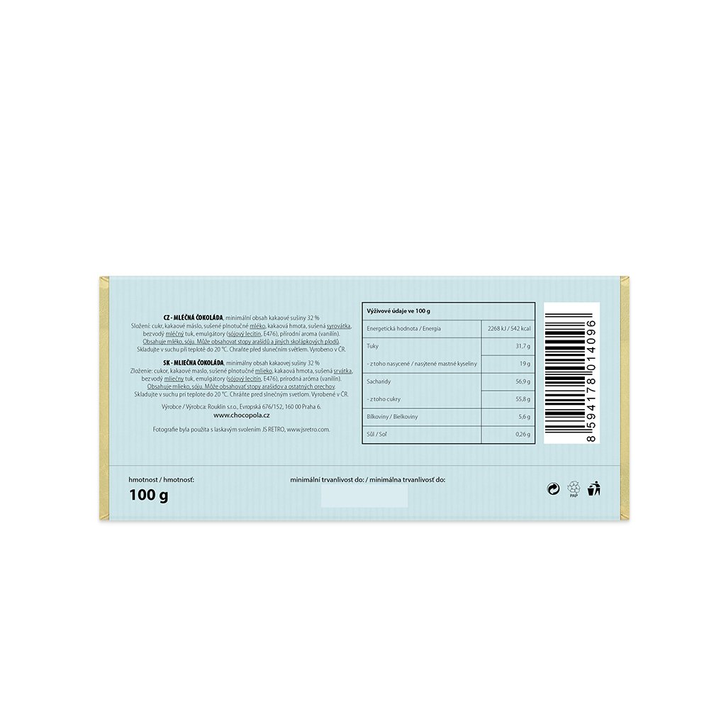 | Čokoláda: | mléčná |