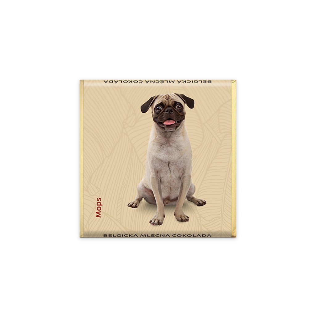Kvalitní mléčná čokoláda s motivem mopse je oblíbeným dárkem. Tato malá čokoláda zaručeně udělá velkou radost každému chovateli psů nebo nadšenému pejskaři. MLÉČNÁ ČOKOLÁDA, minimální obsah kakaové sušiny 32 % Složení: cukr, kakaové máslo, sušené plnotučné mléko, kakaová hmota, sušená syrovátka, bezvodý mléčný tuk, emulgátory (sójový lecitin, E476), přírodní aroma (vanilín). Obsahuje mléko, sóju. Může obsahovat stopy arašídů a jiných skořápkových plodů. Výživové údaje ve 100 g výrobku Energetická hodnota2 268 kJ / 542 kcal Tuky- z toho nasycené mastné kyseliny31,7 g19 g Sacharidy- z toho cukry56,9 g55,8 g Bílkoviny5,6 g Sůl0,26 g Skladujte v suchu při teplotě do 20 °C. Chraňte před slunečním světlem. Vyrobeno v ČR, čokoládová hmota BARRY CALLEBAUT - Belgie.Doplňkové parametry