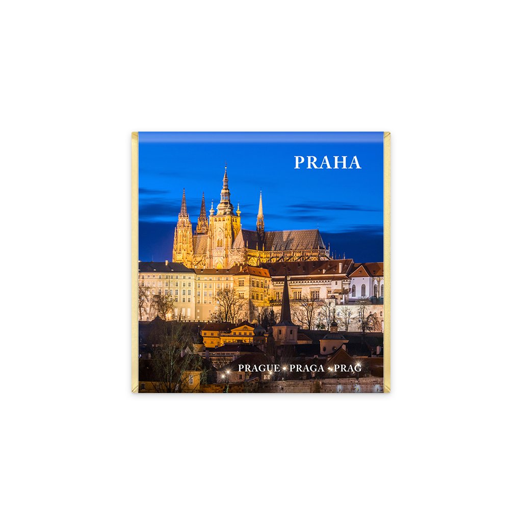 Hořká čokoláda s motivem Prahy je oblíbeným suvenýrem. Základem pro přípravu poutavého obalu jsou působivé fotografie. Nenechali jsme proto nic náhodě a oslovili fotografy, kteří se focením našeho stověžatého města nad Vltavou dlouhodobě zabývají. Výsledkem je podmanivý obal, jenž zaujme každého návštěvníka Prahy. HOŘKÁ ČOKOLÁDA, minimální obsah kakaové sušiny 53 % Složení: kakaová hmota, cukr, kakaové máslo, emulgátory (sójový lecitin, E476), aroma: přírodní vanilka. Obsahuje sóju. Může obsahovat stopy arašídů, jiných skořápkových plodů a mléka. Výživové údaje ve 100 g výrobku Energetická hodnota2 296 kJ / 549 kcal Tuky- z toho nasycené mastné kyseliny36,2 g21,7 g Sacharidy- z toho cukry46 g43,3 g Bílkoviny5,2 g Sůl0,01 g Skladujte v suchu při teplotě do 20 °C. Chraňte před slunečním světlem.Vyrobeno v ČR, čokoládová hmota BARRY CALLEBAUT - Belgie.Doplňkové parametry
