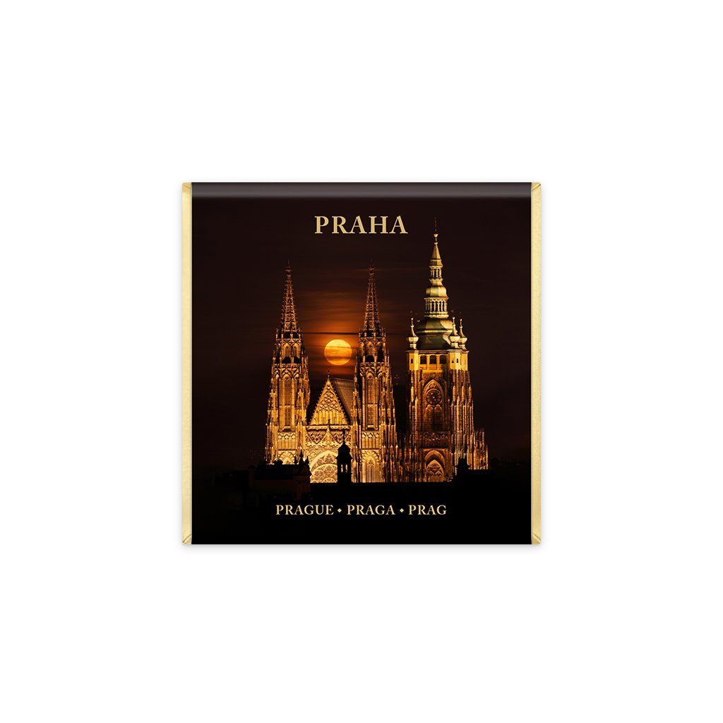 Hořká čokoláda s motivem Prahy je oblíbeným suvenýrem. Základem pro přípravu poutavého obalu jsou působivé fotografie. Nenechali jsme proto nic náhodě a oslovili fotografy, kteří se focením našeho stověžatého města nad Vltavou dlouhodobě zabývají. Výsledkem je podmanivý obal, jenž zaujme každého návštěvníka Prahy. HOŘKÁ ČOKOLÁDA, minimální obsah kakaové sušiny 53 % Složení: kakaová hmota, cukr, kakaové máslo, emulgátory (sójový lecitin, E476), aroma: přírodní vanilka. Obsahuje sóju. Může obsahovat stopy arašídů, jiných skořápkových plodů a mléka. Výživové údaje ve 100 g výrobku Energetická hodnota2 296 kJ / 549 kcal Tuky- z toho nasycené mastné kyseliny36,2 g21,7 g Sacharidy- z toho cukry46 g43,3 g Bílkoviny5,2 g Sůl0,01 g Skladujte v suchu při teplotě do 20 °C. Chraňte před slunečním světlem.Vyrobeno v ČR, čokoládová hmota BARRY CALLEBAUT - Belgie.Doplňkové parametry
