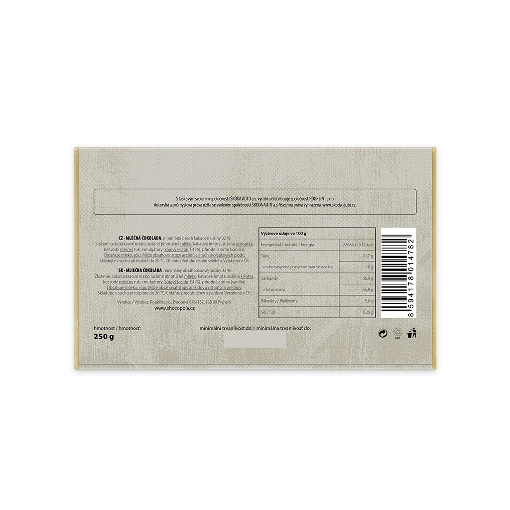 Škoda 1000 MB, typ 990, mléčná čokoláda 250 g