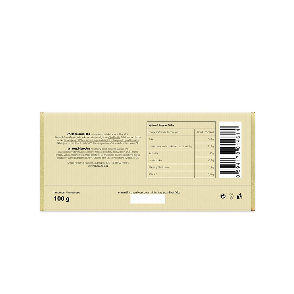 HOŘKÁ ČOKOLÁDA, minimální obsah kakaové sušiny 53 %.