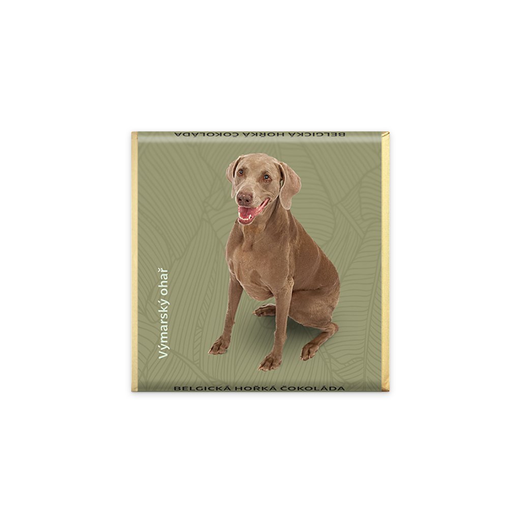 Kvalitní hořká čokoláda s motivem výmarského ohaře je oblíbeným dárkem. Tato malá čokoláda zaručeně udělá velkou radost každému chovateli psů nebo nadšenému pejskaři. HOŘKÁ ČOKOLÁDA, minimální obsah kakaové sušiny 53 % Složení: kakaová hmota, cukr, kakaové máslo, emulgátory (sójový lecitin, E476), aroma: přírodní vanilka. Obsahuje sóju. Může obsahovat stopy arašídů, jiných skořápkových plodů a mléka. Výživové údaje ve 100 g výrobku Energetická hodnota2 296 kJ / 549 kcal Tuky- z toho nasycené mastné kyseliny36,2 g21,7 g Sacharidy- z toho cukry46 g43,3 g Bílkoviny5,2 g Sůl0,01 g Skladujte v suchu při teplotě do 20 °C. Chraňte před slunečním světlem.Vyrobeno v ČR, čokoládová hmota BARRY CALLEBAUT - Belgie.Doplňkové parametry